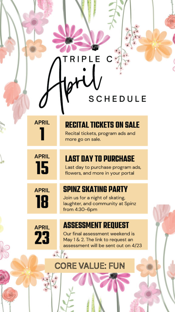 April is here, and recital season is officially underway at Triple C Dance Academy! We have some exciting events, important deadlines, and opportunities ahead. Be sure to mark your calendars and review the details below.